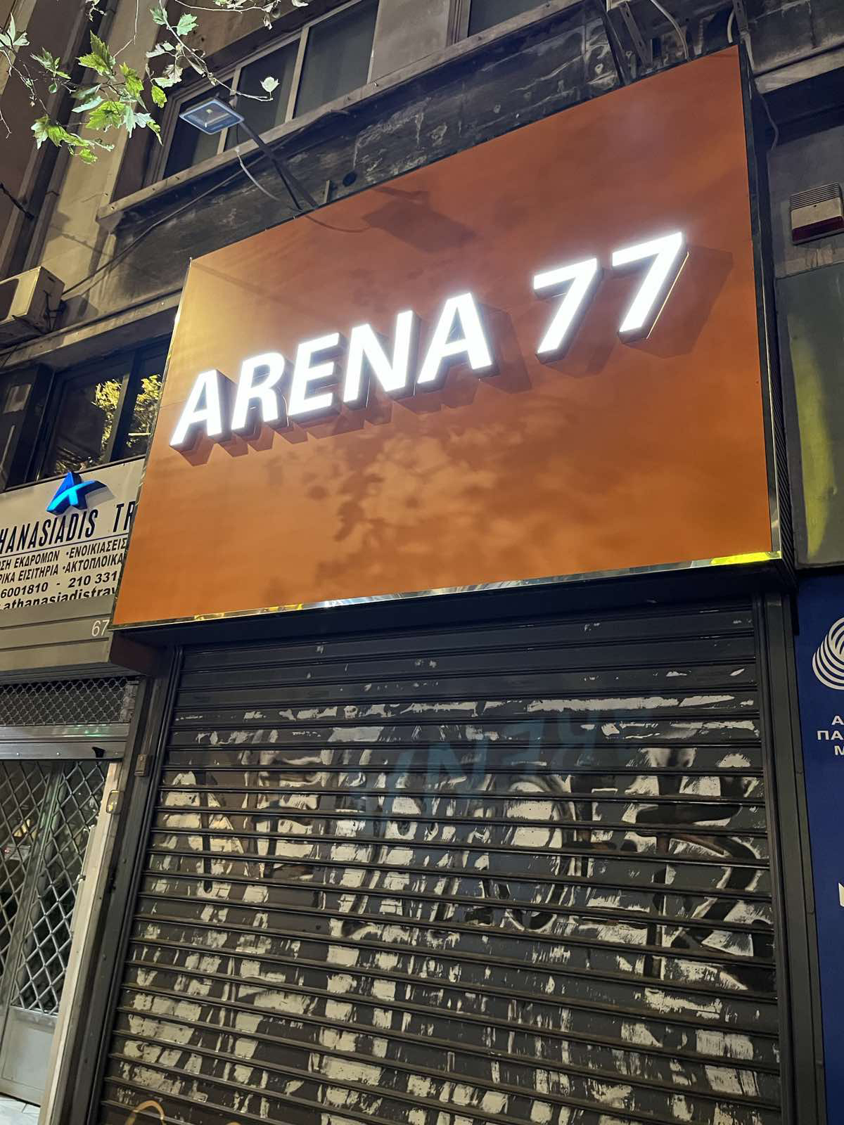 ARENA 77 Κατασκευή Κουτιαστών Φωτεινών Μεταλλικών Γραμμάτων Επιγραφές / Πινακίδες Κατασκευή κουτιαστών φωτεινών γραμμάτων πάνω σε βαμμένο etalbon και μεταλλική κορνίζα, για το κατάστημα ARENA 77. Skills Posted on September 26, 2022 ← ΤΕΝΤΕΣ ΟΛΥΜΠΟΣ στον ΑΓΙΟ ΔΗΜΗΤΡΙΟ Scool Coffee & more →